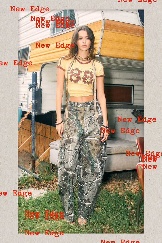 [XPT264R] Cuff Hem Cargo Wide Leg Jeans