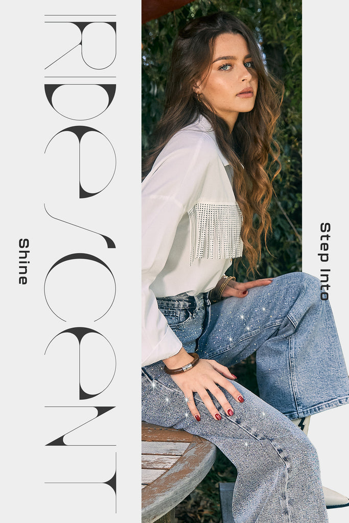 [XPT611] High Rise Flare Jeans With Waist Snaps