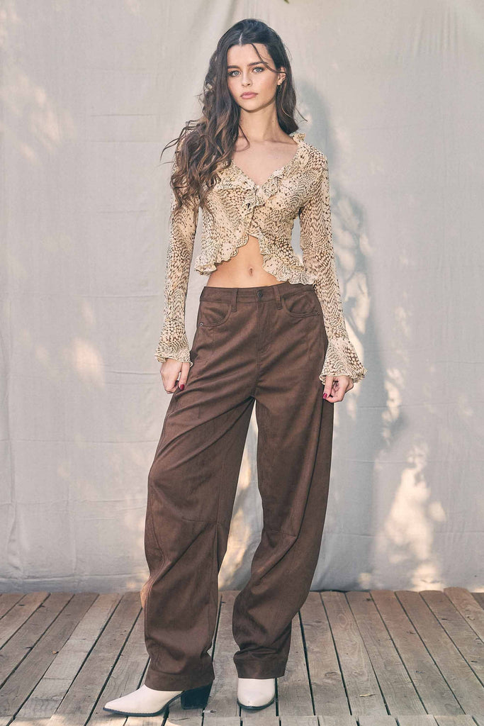 [XPT656] Suede Baggy Barrel Jeans