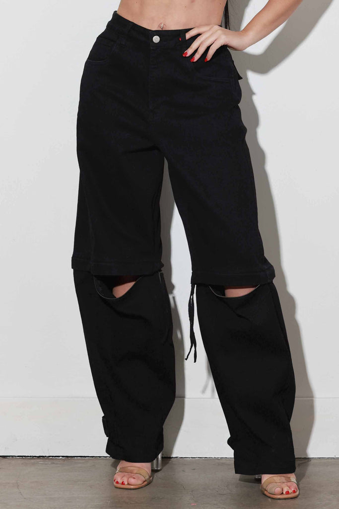 [XPT501] Zip Off Barrel Baggy Jeans