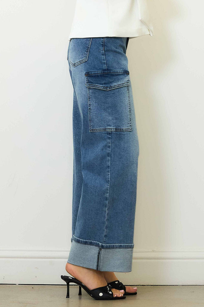 [XPT264R] Cuff Hem Cargo Wide Leg Jeans