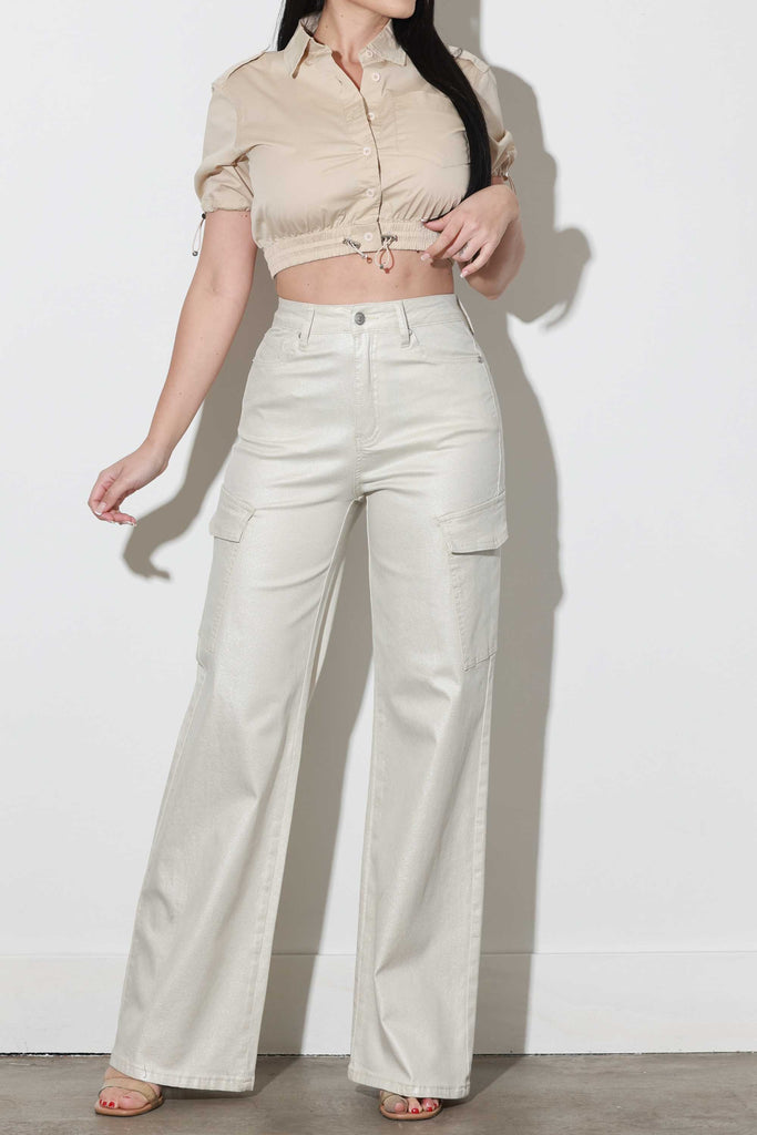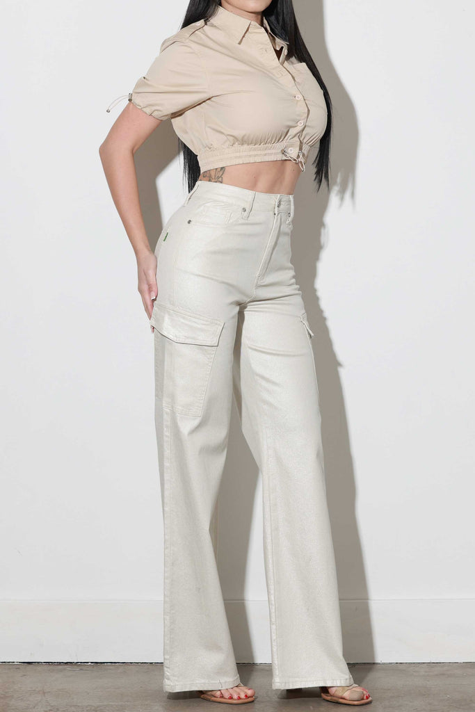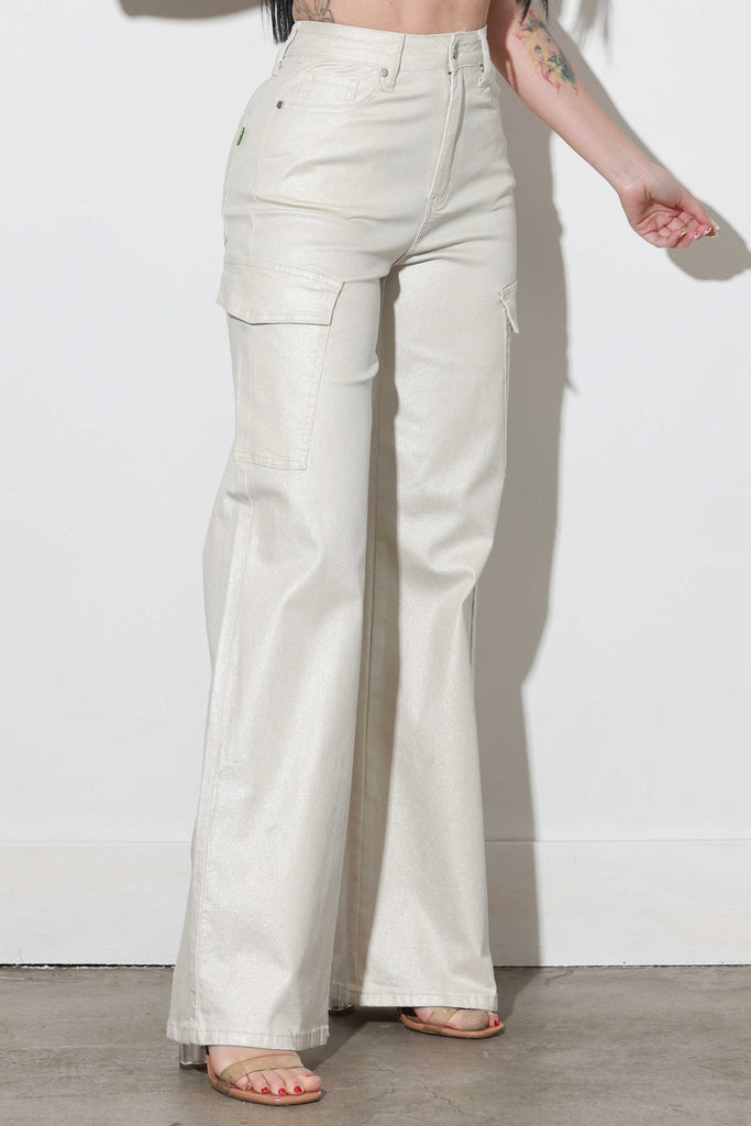 Glitter High-Rise Cargo Wide Leg Jeans