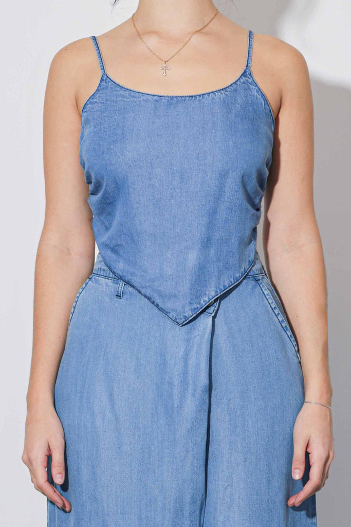 A TENCEL™ fibers top featuring adjustable shoulder strap and smocking back.