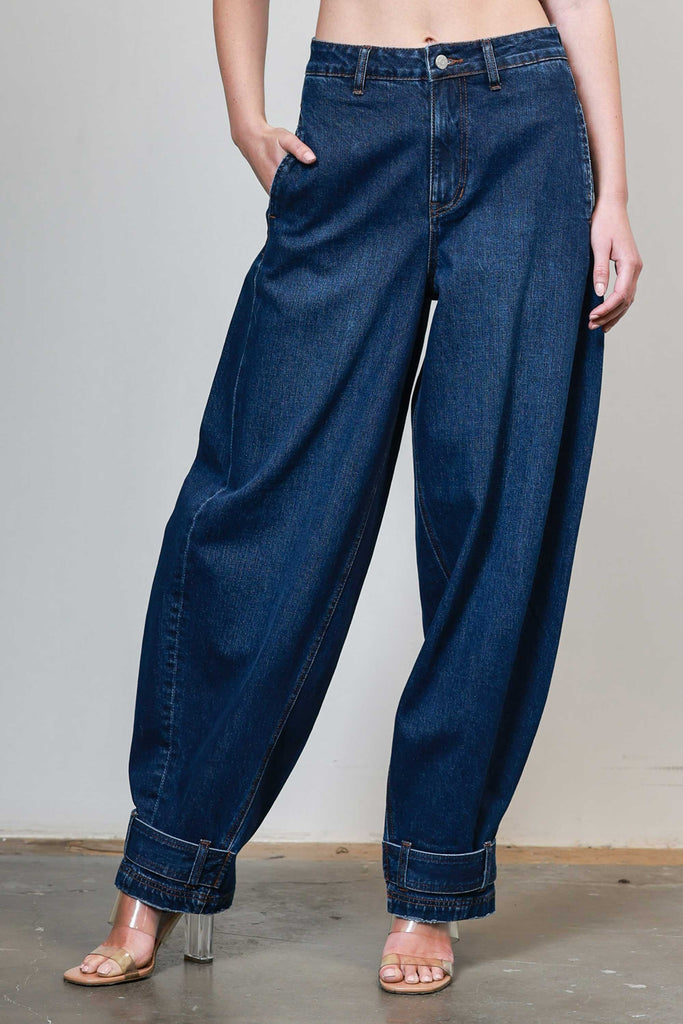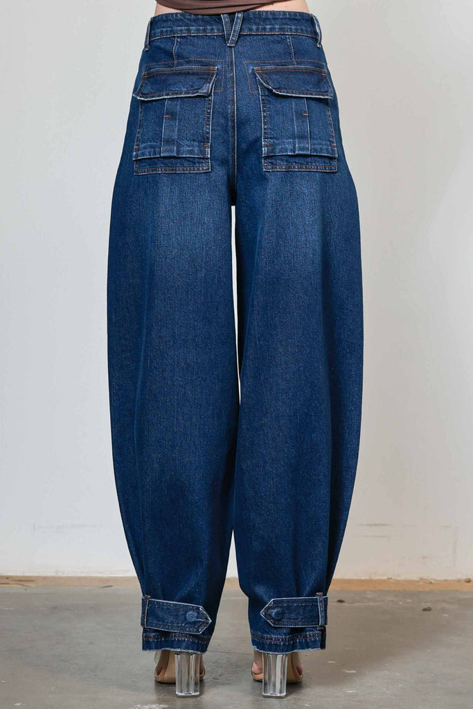 [XPT471] Buckled Opening Barrel Baggy Jeans