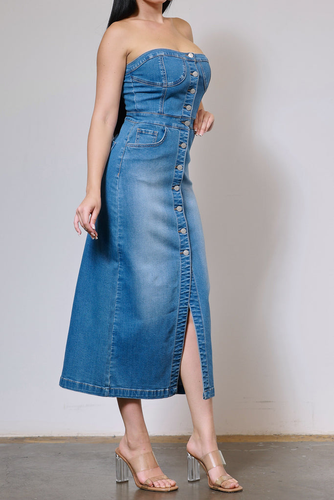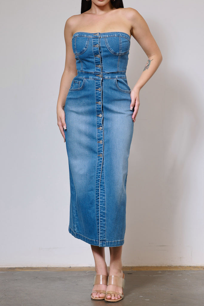 [XJS078] Denim Midi Dress