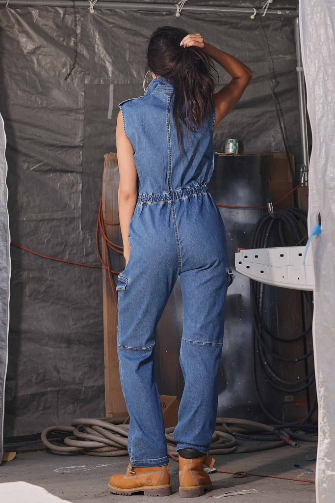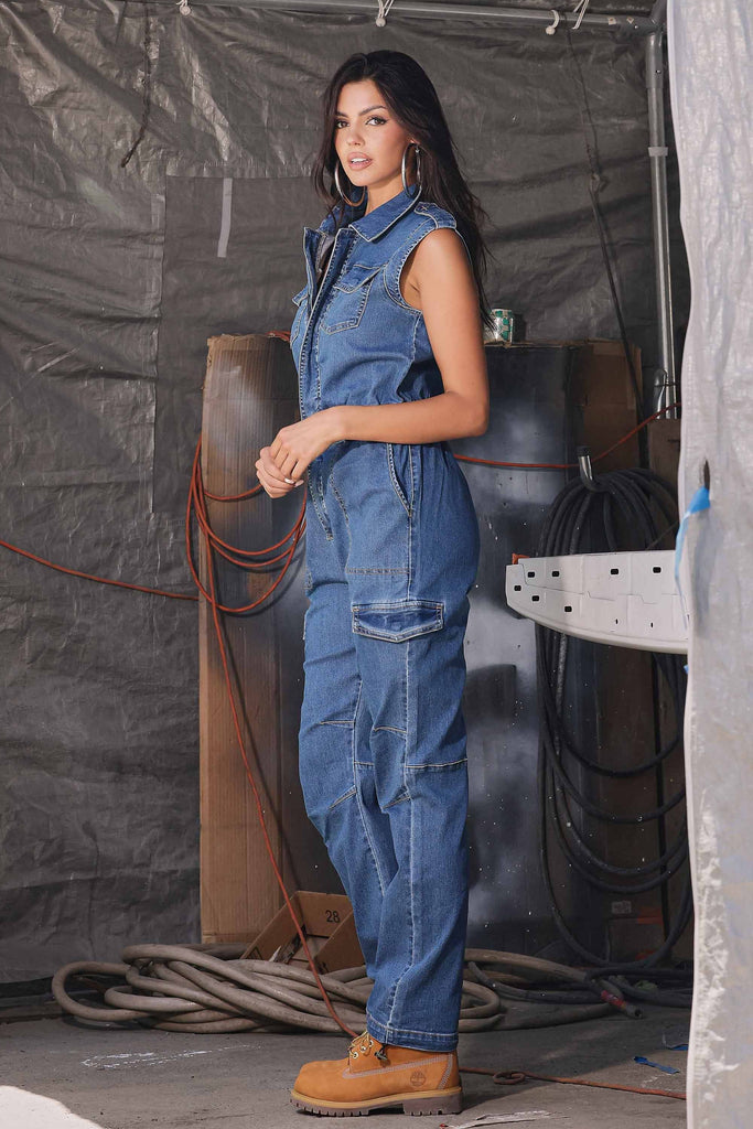 Sleeveless Denim Jumpsuit