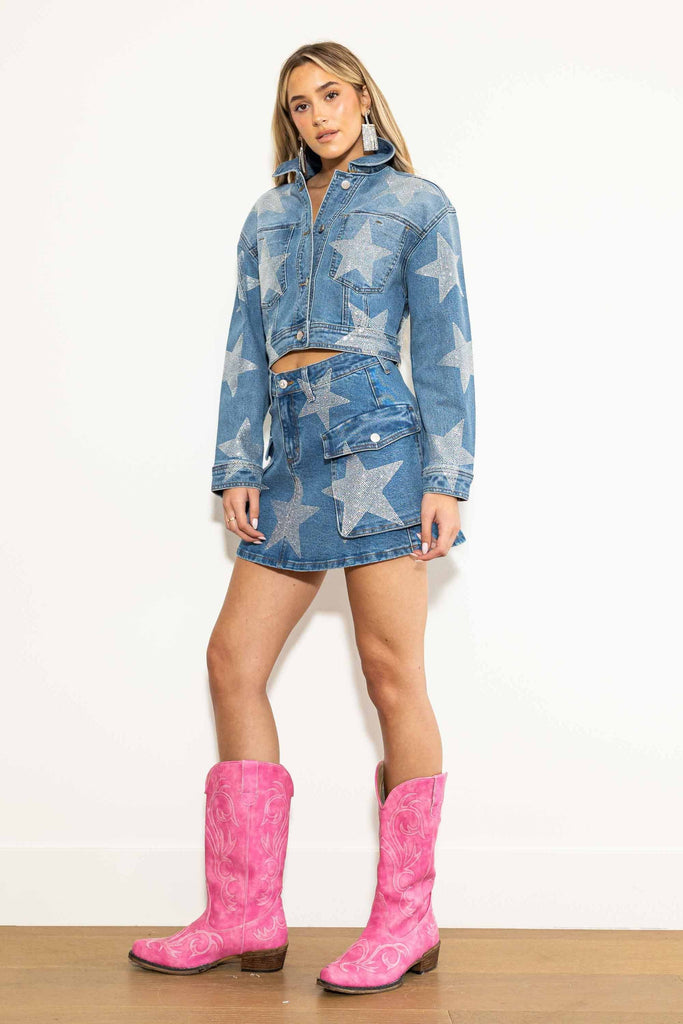 [XJK033] Stars Born Rhinestone Denim Jacket