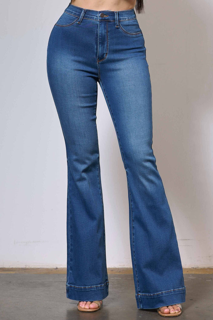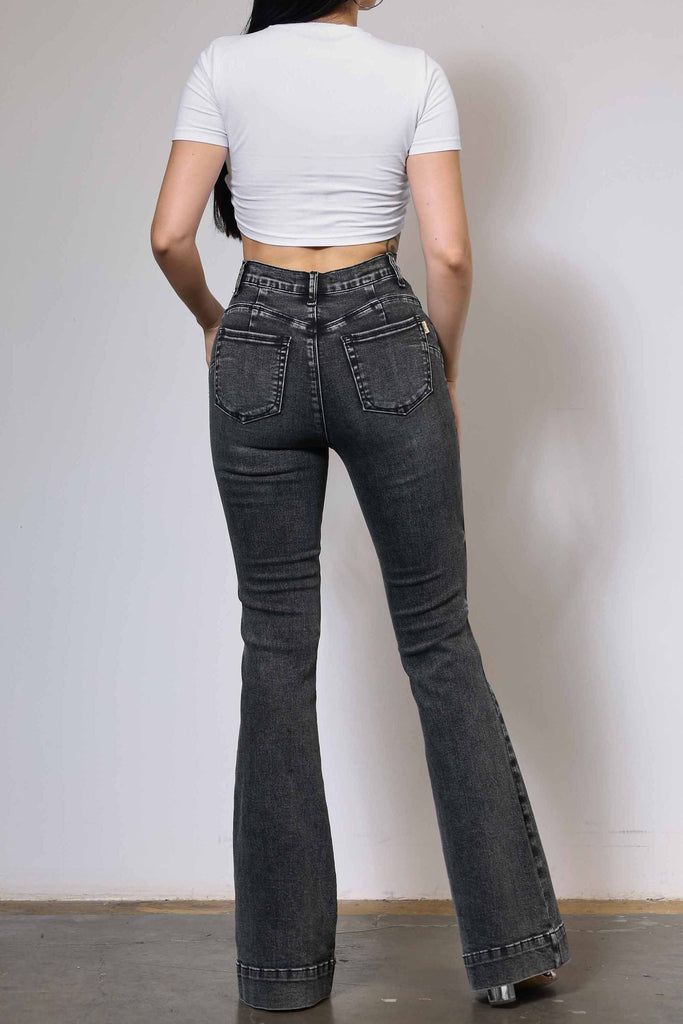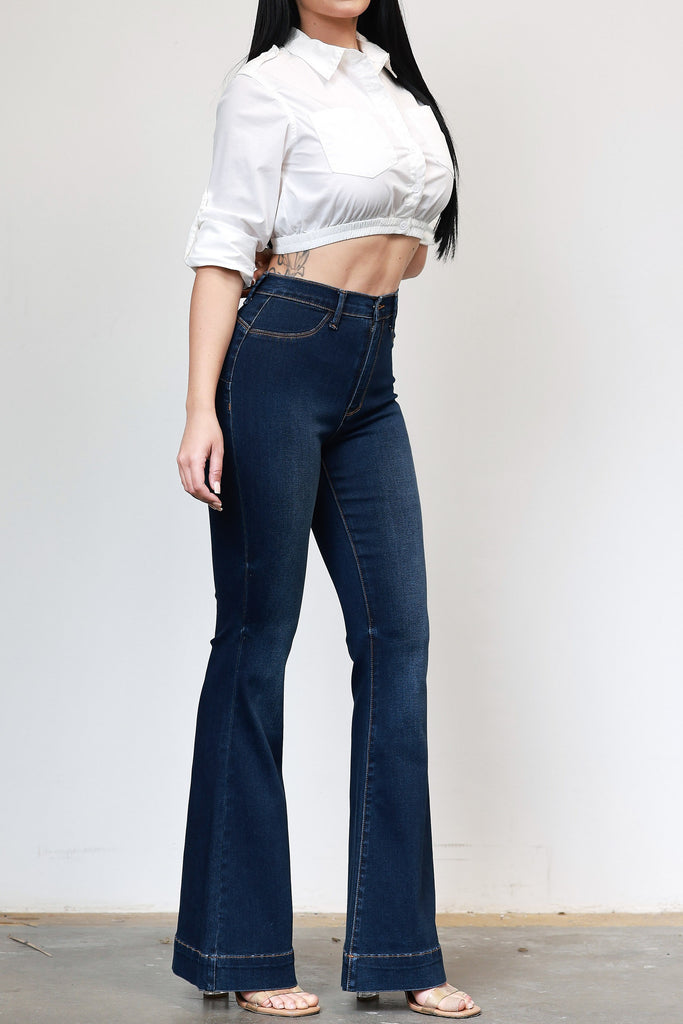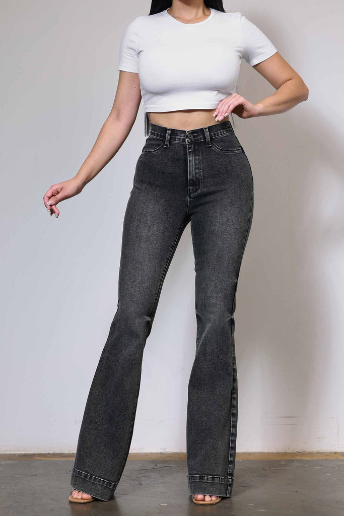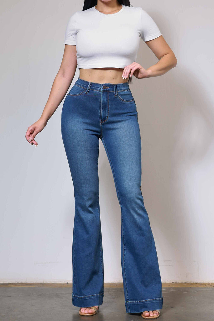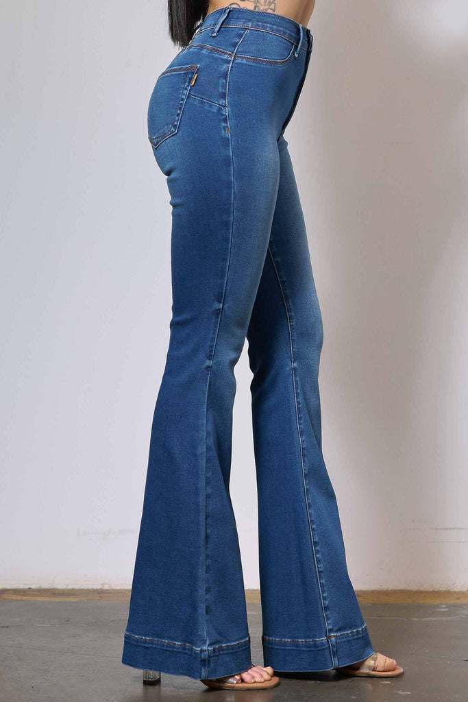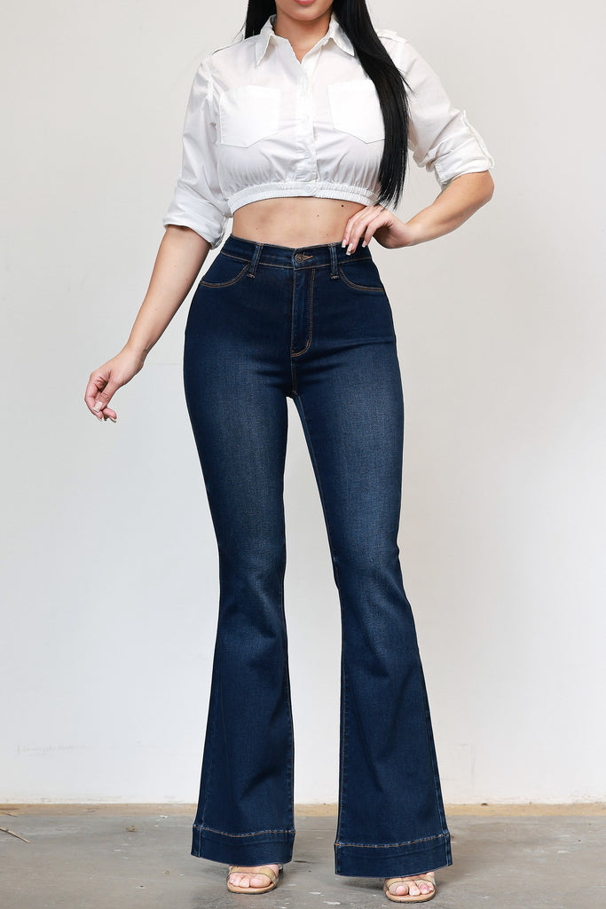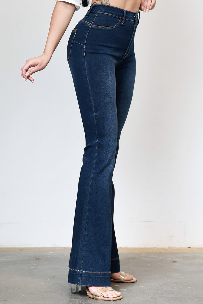 [P6220] High Rise Flare Jeans With Doubled Cuff