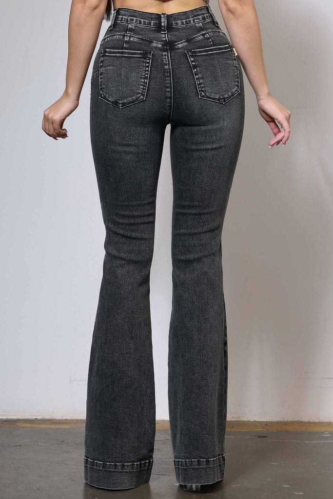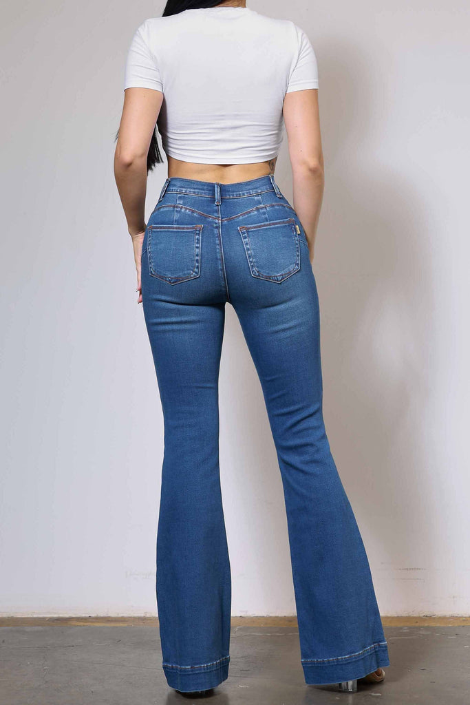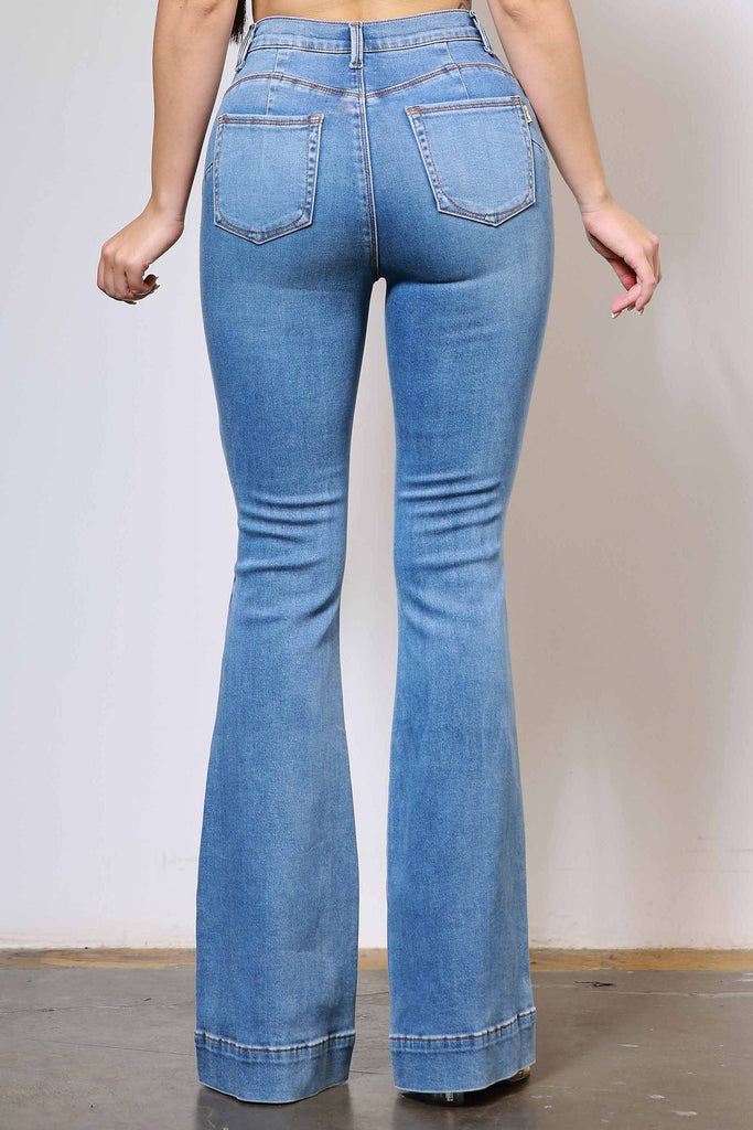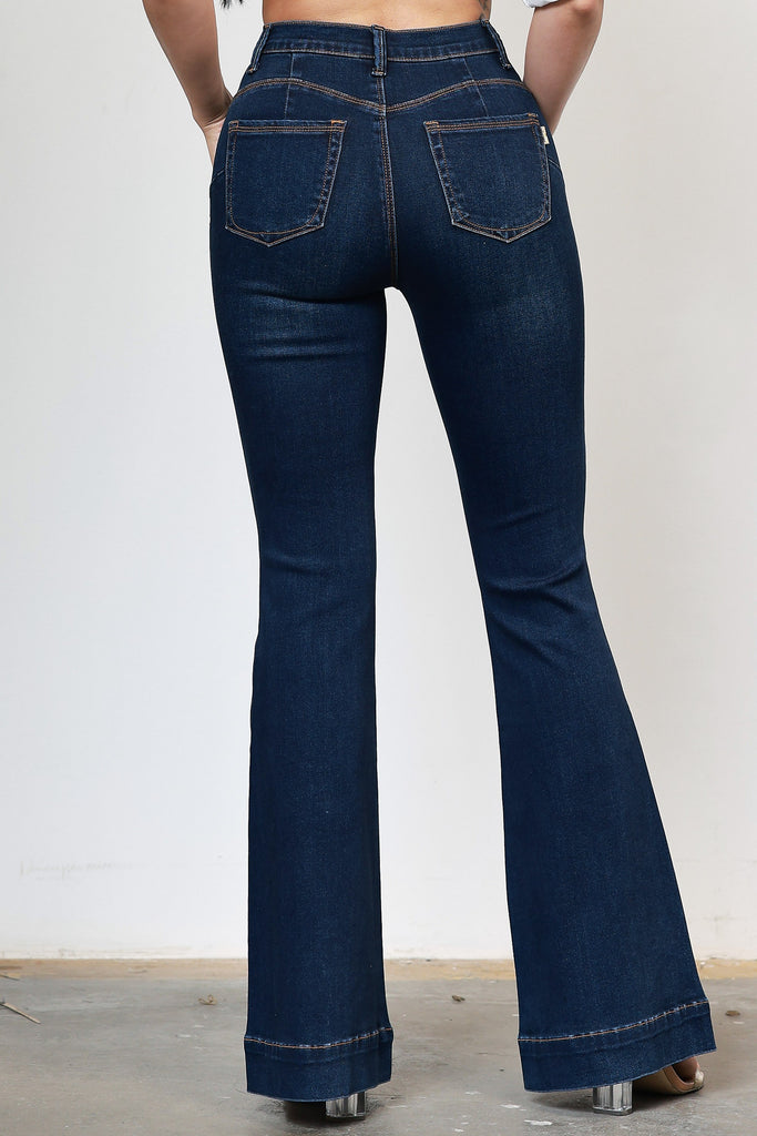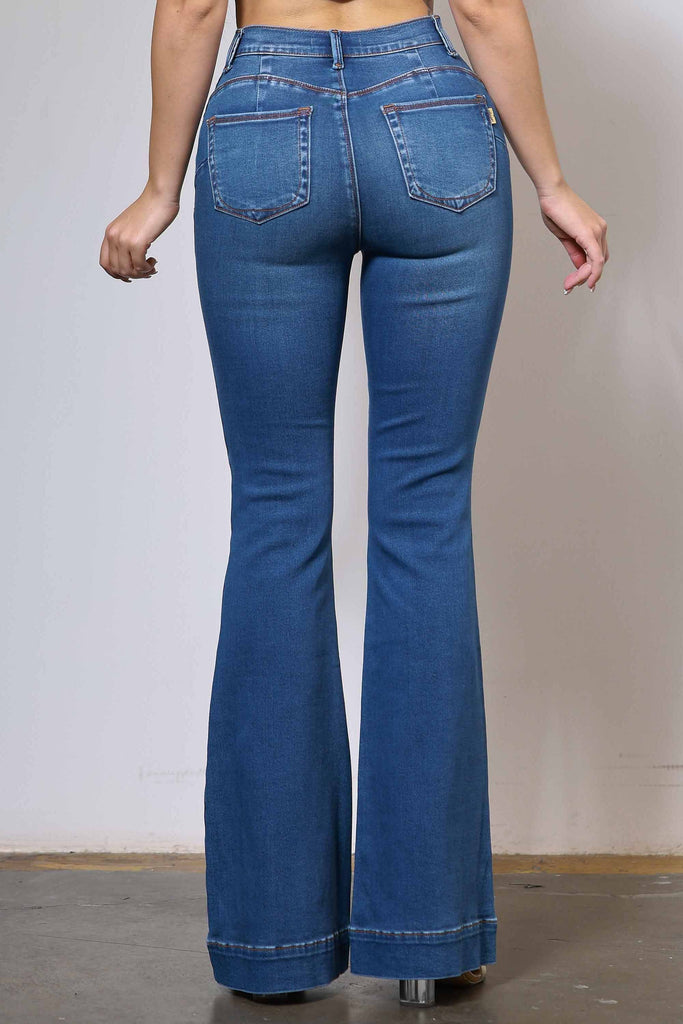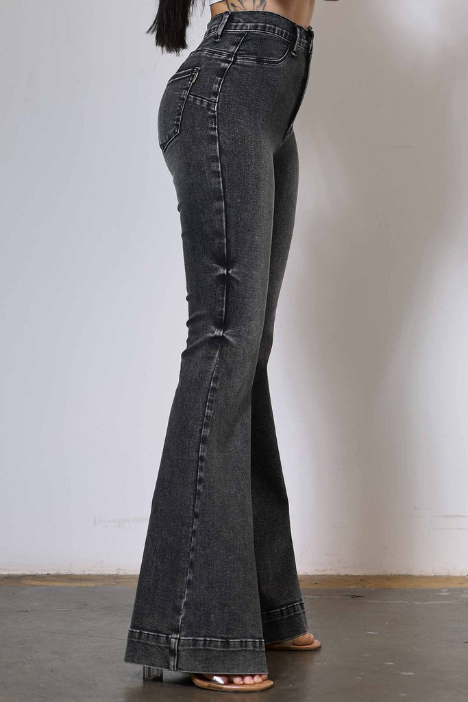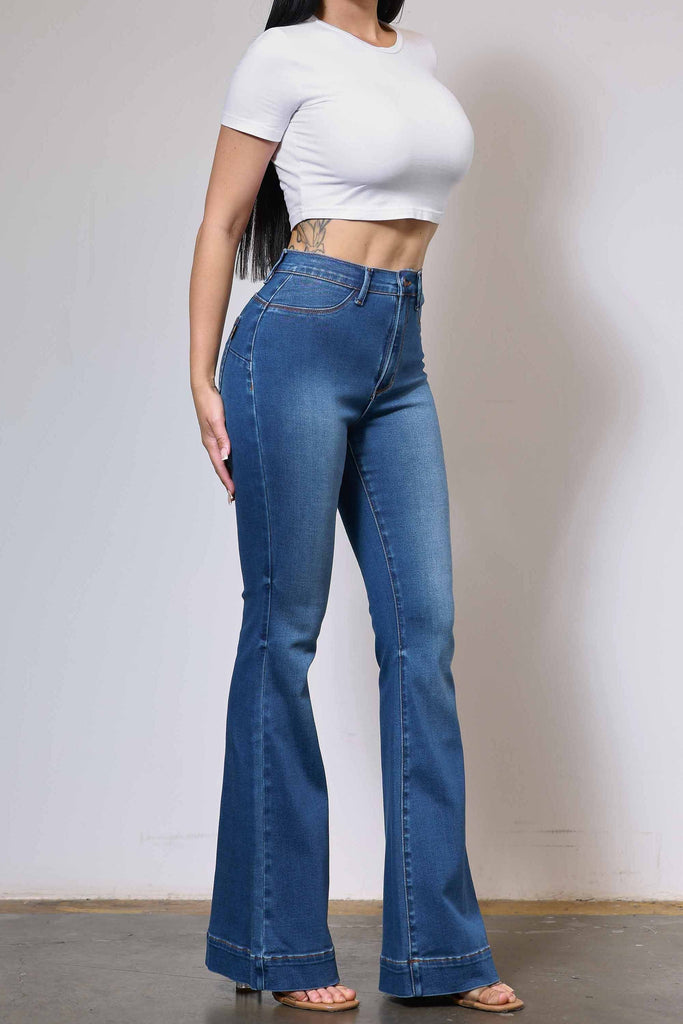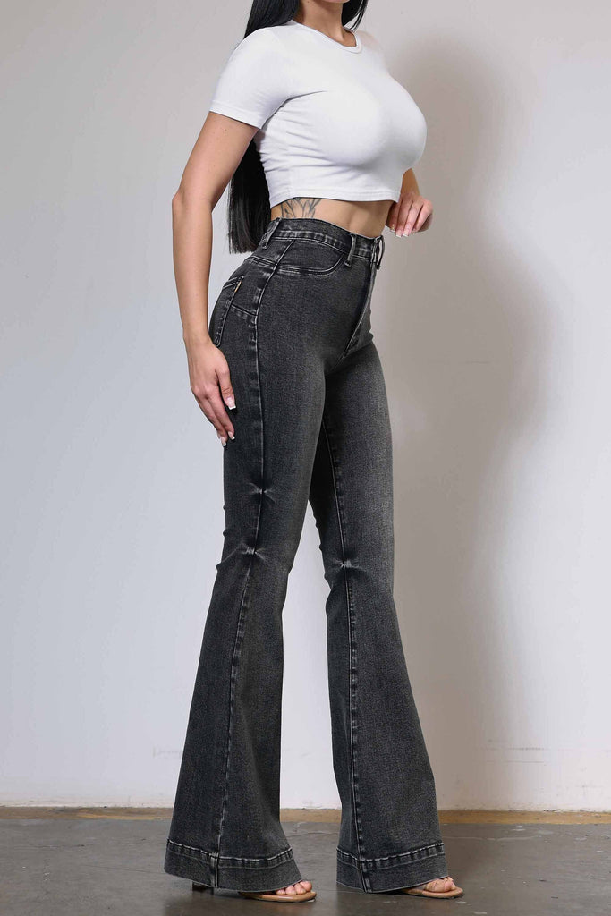 [P6220] High Rise Flare Jeans With Doubled Cuff