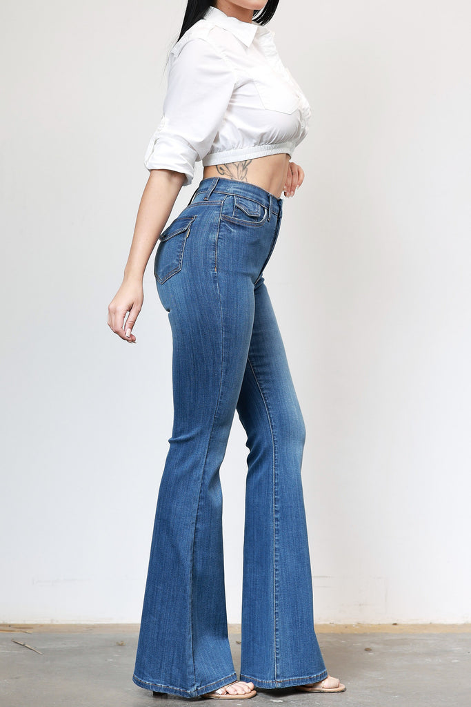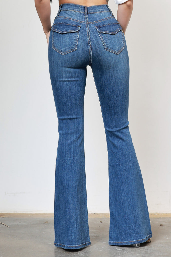 [P6241] High-Rise Flare Jeans With Back Flap Pockets