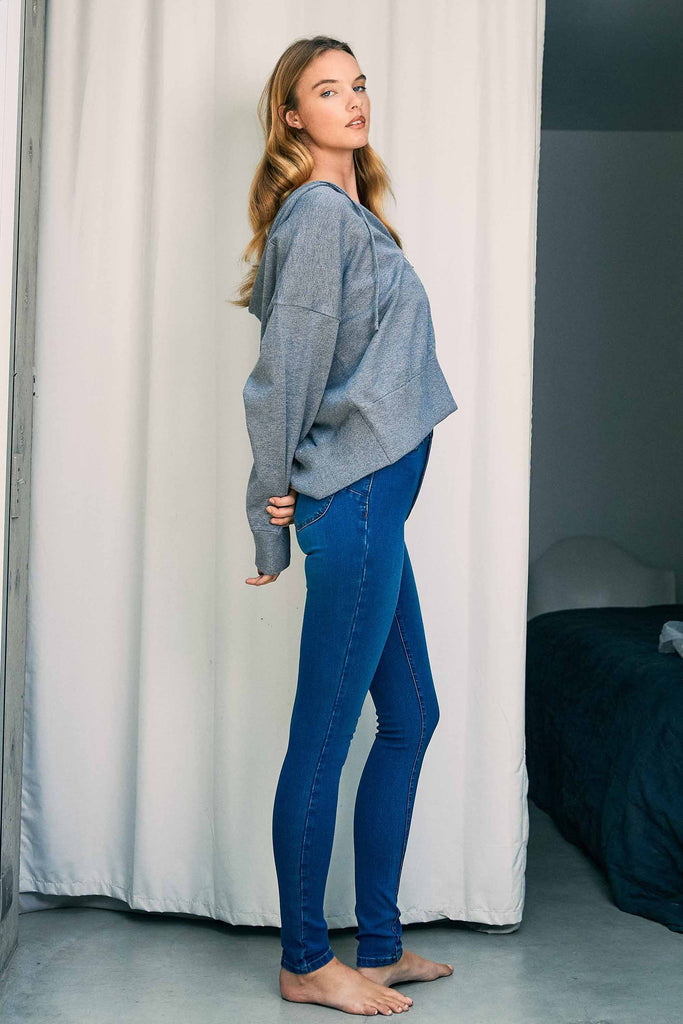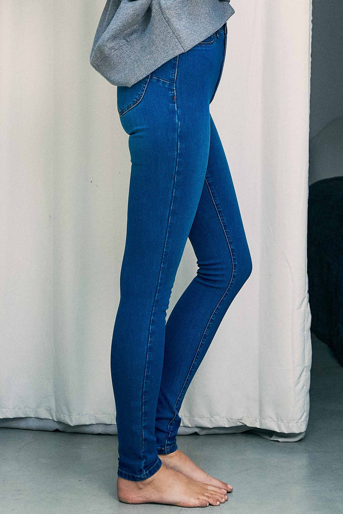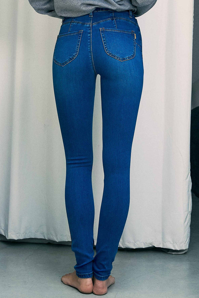 A pair of high-rise skinny jeans featuring faux front pockets, back pockets and a zip-fly closure.