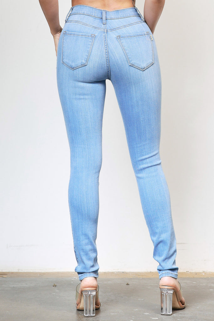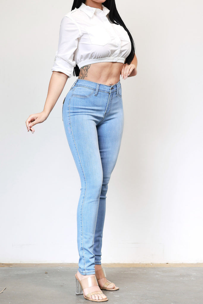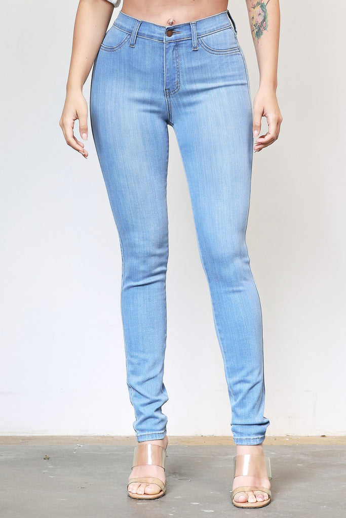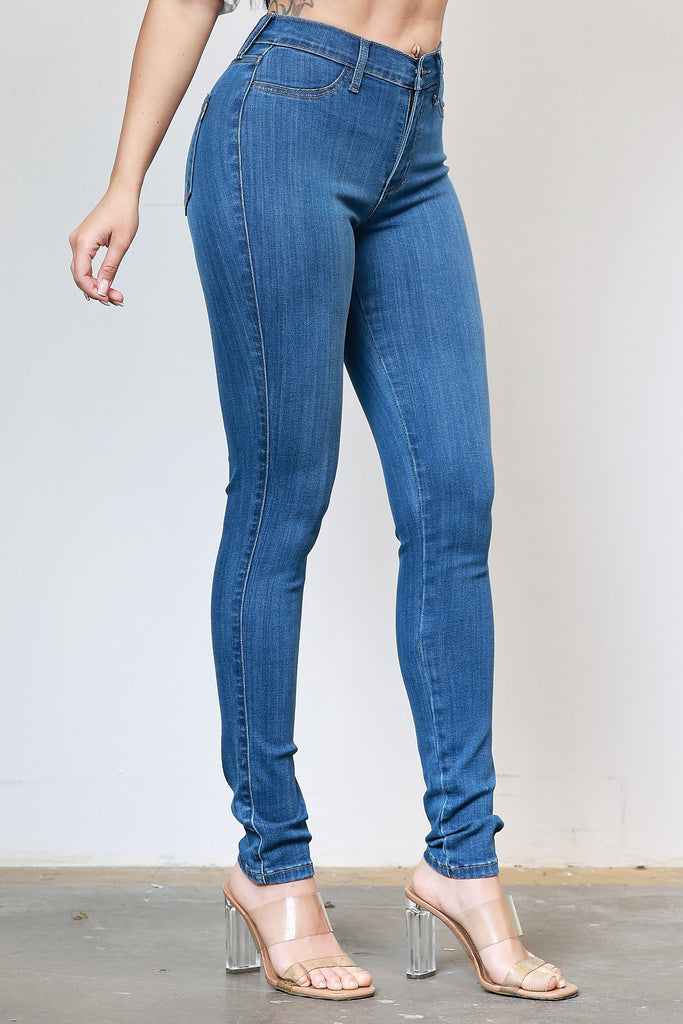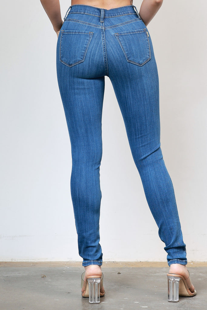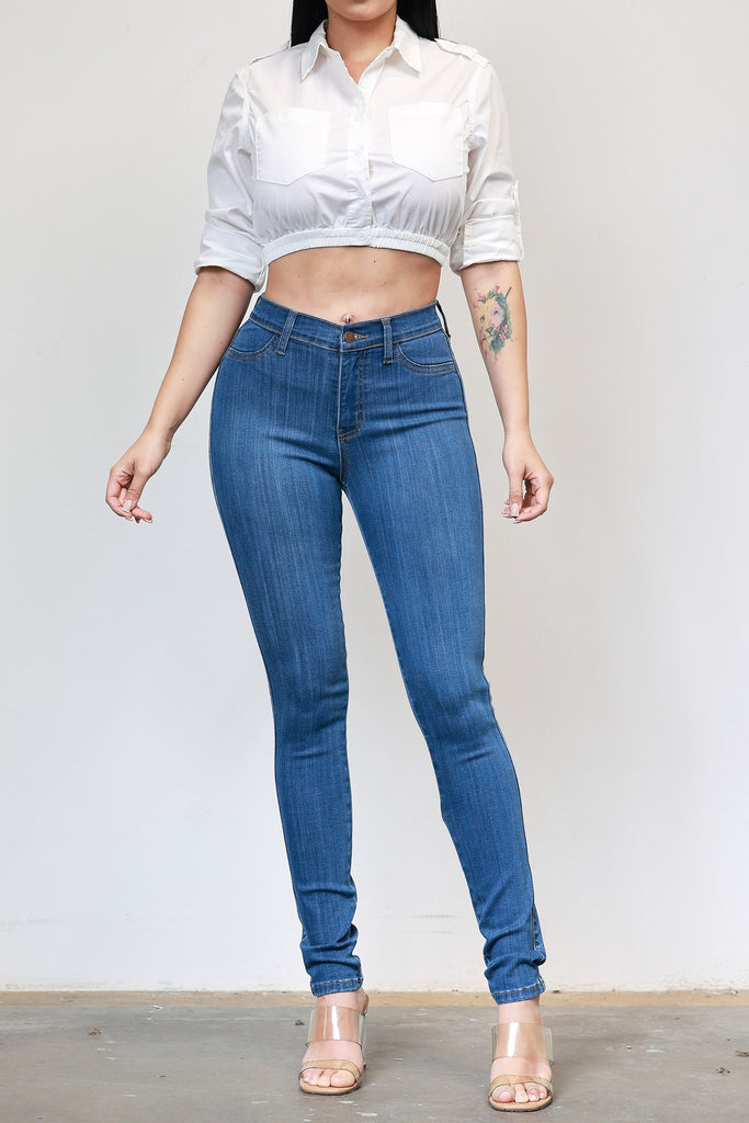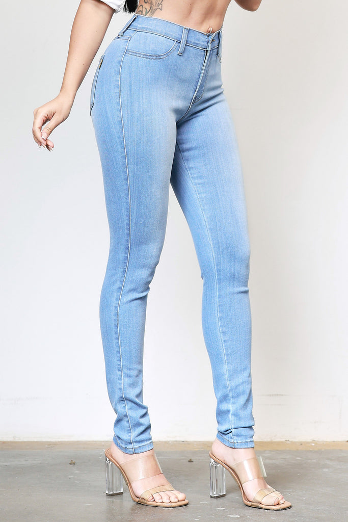 [P6600] Mid Rise Skinny Jeans With Faux Front Pockets