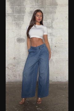 [XPT716] Wrapped Waist Wide Leg Jeans